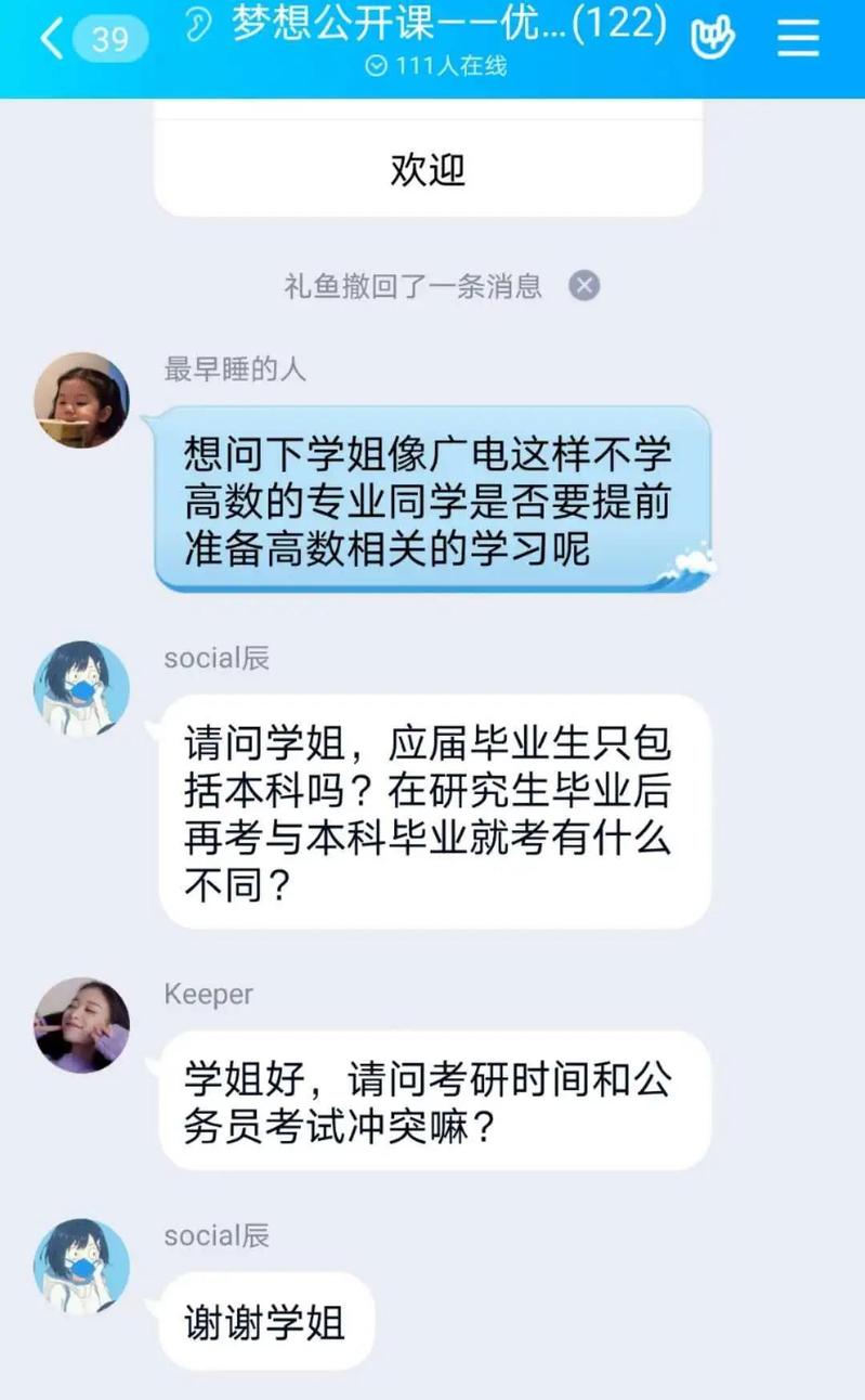 第一位分享的是刘艺璇学姐。她先给同学们介绍了公务员考试的两种类型:国考、省考和选调生。作为参加过国考和选调生考试的考生,学姐给同学们详细介绍了两种类型的报考限制条件和考试内容上的不同。紧接着,学姐详细介绍了考试的流程。在同学们对公务员考试有了大致的了解之后,学姐又从备考复习技巧和方法、备考资源的获得、考试注意事项三个大的方面分享了自己的经验。在答疑阶段,同学们提出了很多的问题。学姐也对考研和考公的抉择、公务员考试公告、报考公务员的条件等问题做出了解答。