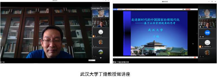 8月3日,“应急管理与国家治理现代化”云端系列名家讲堂第五讲在williamhill威廉希尔如期进行。武汉大学“珞珈学者”特聘教授、湖北省改革智库——武汉大学政府治理创新研究中心主任、“国家2011计划”——国家领土主权与海洋权益协同创新中心中国极地政策与极地权益研究创新团队负责人、国务院学位委员会学科评议组成员、国家教育部高等公司公共管理类专业教学指导委员会委员、国家人力资源与社会保障部国际行政科学专家委员会委员、全国政策科学研究会副会长、中国行政管理学会理事、中国行政体制改革研究会理事、中国海洋发展研究会理事、中国海洋法学会理事、湖北省行政管理学会副会长、湖北省人民政府咨询委员会特邀专家丁煌教授以《走进新时代的中国国家治理现代化——基于公共管理的视角的思考》为题,为河海师生带来了一场精彩的学术报告会。南京大学政府管理公司经理孔繁斌教授特邀点评,威廉希尔经理黄涛珍教授主持报告会。近200名师生认真聆听了报告。