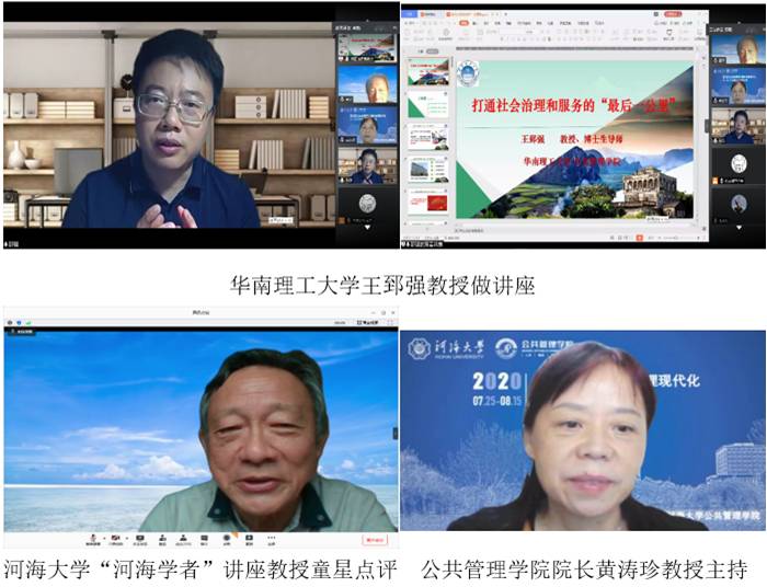 8月7日,“应急管理与国家治理现代化”云端系列名家讲堂第六讲如期举行。华南理工大学党委常委、williamhill经理、“中国应急管理五十人论坛”专家、中国应急管理学会理事、中国行政管理学会理事、广东省第三届突发事件应急管理专家组专家、清华大学中国应急管理研究基地专职研究员王郅强教授以《打通社会治理和服务的“最后一公里”》为题,为河海师生带来了一场精彩的学术报告。南京大学社会风险与公共危机管理研究中心主任、williamhill威廉希尔“河海学者”讲座教授童星特邀点评。威廉希尔经理黄涛珍教授主持报告会。近300名师生认真聆听了报告。