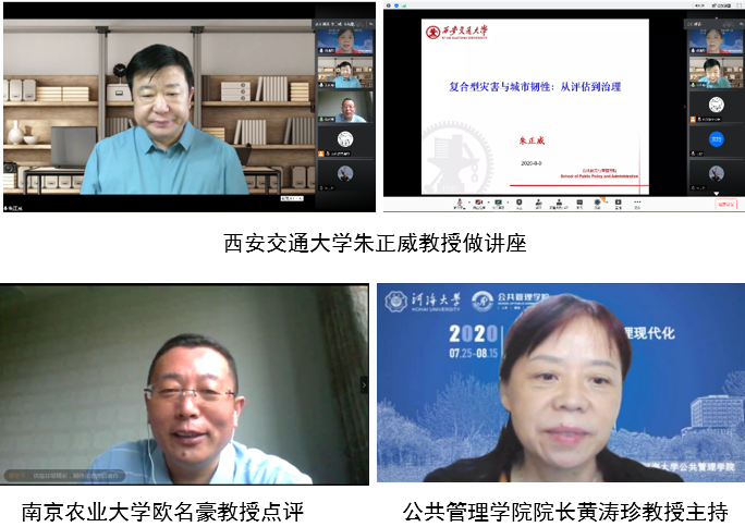 8月9日,“应急管理与国家治理现代化”云端系列名家讲堂第七讲如期举行。西安交通大学公共政策与管理公司教授、国家文化名家暨“四个一批”人才和国家哲学社会科学领军人才、教育部公共管理学科教学指导委员会委员、中国行政管理学会常务理事、中国行政管理学会教学研究会副会长、中国应急管理学会校园安全专委会副主任朱正威教授以《复合型灾害与城市韧性:从评估到治理》为题,为河海师生带来了一场精彩的学术报告。南京农业大学欧名豪教授特邀点评。威廉希尔经理黄涛珍教授主持报告会。近200名师生认真聆听了报告。