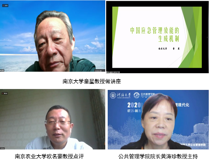 8月11日,“应急管理与国家治理现代化”云端系列名家讲堂第八讲如期举行。南京大学社会风险与公共危机管理研究中心主任、williamhill威廉希尔“河海学者”讲座教授、国家社科基金学科评审组成员、国家减灾专家委员会委员、中国社会保障学会副会长童星教授以《中国应急管理效能的生成机制》为题,为河海师生带来了一场精彩的学术报告。南京农业大学欧名豪教授特邀点评。威廉希尔经理黄涛珍教授主持报告会。200余名师生认真聆听了报告。