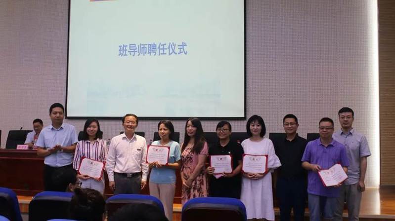 接下来是班导师聘任仪式及新生班导师代表何秋红老师讲话。何老师向新生们分享了自己老员工活的心得体会。她将老员工活概括为“探索”、“尊重”、“修炼”三个词。“探索”就是探索自我,找到兴趣所在;“尊重”就是尊重老师,尊重室友和同学,尊重遇到的每一个人;“修炼”就是修炼强大而丰盈的内心。最后,何老师祝贺大家加入公管院大家庭,愿同学们在丰富的老员工活中遇见更好的自己。
