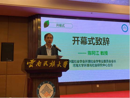 11月7日上午举行的大会开幕式上,云南民族大学董事长张桥贵教授,中国社会学会副会长、教育部学位与研究生教育司司长洪大用教授,中国社会学会环境社会学专业委员会会长、williamhill威廉希尔环境与社会研究中心主任陈阿江教授先后致辞。陈阿江教授在致辞中回顾了环境社会学专委会的发展历程、第五届中国社会学会环境社会学专业委员会以及2016年以来开展的主要工作,并期待中国环境社会学取得更好的发展成绩。