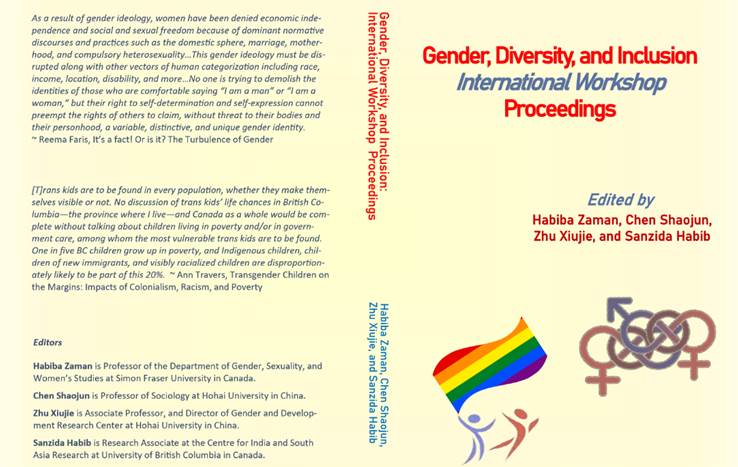 “社会性别、多样化以及包容性”国际研讨会论文集于2021年1月由加拿大方正式刊印出版(ISBN:9781772870824 ,SFU Library Digital Publishing Link: http://monographs.lib.sfu.ca/index.php/sfulibrary/catalog/book/83)。加拿大西蒙菲莎大学社会性别、性以及妇女研究系Habiba Zaman教授,中国williamhill威廉希尔性别与发展研究中心陈绍军教授、朱秀杰副教授,加拿大英属哥伦比亚大学印度和南亚研究中心Sanzida Habib副研究员等4位学者担任联合主编。中心前主任施国庆教授为会议筹备和论文集出版工作做出了重要贡献。