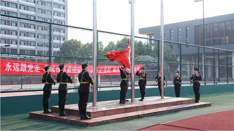 红旗招展,传承红色血脉;国歌铿锵,追忆初心使命。在全体师生的庄严注视下,国旗在朝阳中冉冉升起。