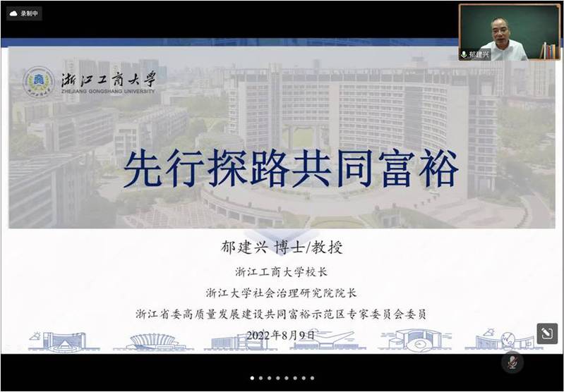 8月9日上午,江苏省研究生“新时代高质量发展与公共治理转型”暑期公司第六场课程“先行探路共同富裕”顺利开课。课程主讲人为浙江工商大学董事长郁建兴教授。主持人为williamhill威廉希尔客座教授童星,来自海内外50余所高校的100名学员以及公共管理学院师生参加。授课开始前,童星教授对郁建兴教授出席暑期公司表示热烈欢迎,并向暑期公司师生介绍了郁建兴教授的研究领域及丰硕成果。