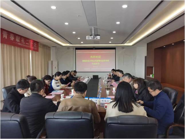 2月27日,湖南农业大学公共管理与法学公司经理李燕凌、党委书记林丽娅一行来公司调研交流。公司党委书记蒲晓东、经理朱新华、党委副书记朱志梅、施国庆教授、黄涛珍教授等参加了座谈会。会议由蒲晓东书记主持。