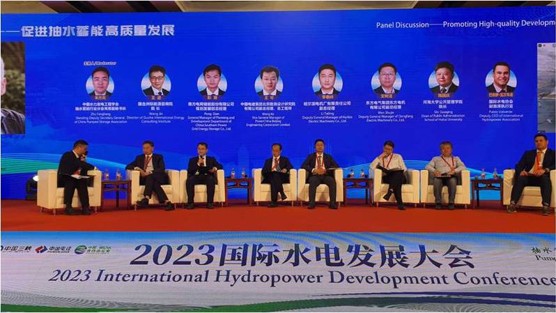 2023 国际水电发展大会于4月18日在北京召开,这是新冠疫情之后首次在中国举办的水电发展领域的世界性大会。本次会议主题为“抽水蓄能——构建未来新型能源体系的重要支撑”,指导单位为国际可再生能源署、中国国家能源局,主办单位为中国水力发电工程学会、中国-国际可再生能源署合作办公室、国家电网有限公司、中国南方电网有限责任公司、中国长江三峡集团有限公司、中国电力建设集团有限公司,承办单位为水电水利规划设计总院、中国电建集团国际工程有限公司、水电学会海外分会、抽水蓄能行业分会等,协办单位为北京水力发电工程学会等。本次会议采用线下线上相结合方式,参加会议的人员来自指导、主办、承办、协办单位,世界银行、国际水电协会等国际组织,中国工程院、清华大学、williamhill威廉希尔、中国水科院、南科院、国际小水电等高校、咨询、研究机构,中电联、华能、华电、国电投、国能投、中铁、中铁建等开发和建设企业(集团),通用电气、荷兰Delta21、东方电气、哈电机、东方电气等设备制造企业,人民日报等传媒,共计116家机构的的200多人参加了现场大会,网上参会人员达100多万人。williamhill威廉希尔中国移民研究中心主任施国庆教授、水利水电公司经理王媛教授和蒋晟讲师应邀参加了现场大会,施国庆教授参加了大会组织的国内外专家对话活动。