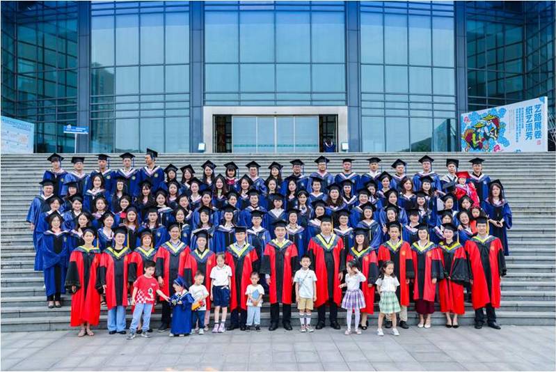典礼结束后,毕业生们与出席领导和导师一起至图书馆前合影