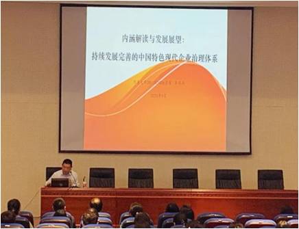大会首先进行的是“听海学堂”校园讲座。李瑞兵员工结合自身工作岗位和实践,以“内涵解读与发展展望:持续发展完善的中国特色现代企业治理体系”为题,对国有企业的法定职责、运行机制、决策特点进行了解读。
