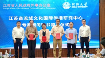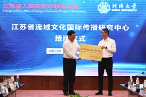 孙轶主任为中心授牌,孙轶主任和唐洪武书记为中心顾问颁发了聘书,在各位领导、专家的见证下,江苏省流域文化国际传播研究中心圆满落成。