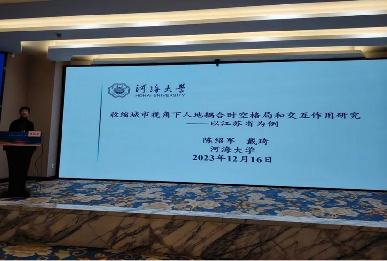 陈绍军教授以“收缩城市视角下江苏省人地耦合时空格局和交互作用研究——以江苏省为例”为题作大会主旨发言;何志扬副教授以“互联网为农村女性非农就业带来’数字红利’了吗”为题在“人口高质量发展与经济社会协调可持续发展”学术专场发言,施国庆教授对该学术专场汇报进行了精彩点评。梁兵、张陈晓、刘明珠等十余位同学在各学术专场进行了发言。