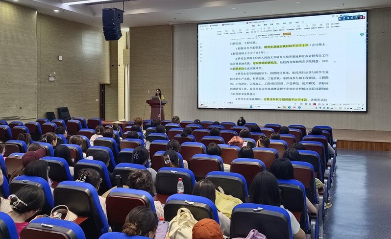 公司产品秘书田然老师针对基地实践期间的学籍管理、论文工作环节和日常生活管理等方面向同学们做了详细解读。在基地实践期间,每位研究生需听取规定次数的专题讲座,登陆系统填写各环节日志和记录,同时与校内校外双导师保持紧密联系、推进学位论文撰写工作。在日常生活管理方面,田老师提醒各位同学认真学习《williamhill威廉希尔全日制专业学位硕士研究生基地实践手册》,遵守公司和基地单位双方的制度规定,注意用水用电安全。