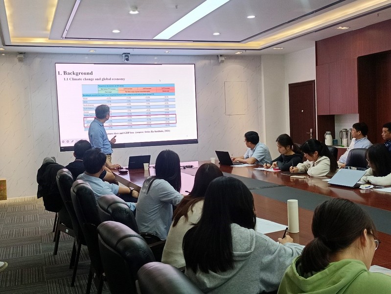 许智文教授以“中国低碳转型:走向更可持续发展的道路”为题,为师生讲解了国际碳排放碳中和基本背景,分析了中国能源基本结构和低碳能源转型面临的契机和挑战。许智文以自己研究为基础,分析了中国减排目标和具体实现路径,并提出了GREEN MARKET系列应对举措。