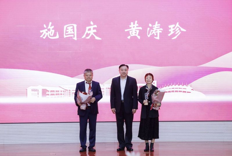 开幕式中,还颁发了公司发展杰出贡献奖、特殊贡献奖等。陆国宾为获奖老师颁奖。