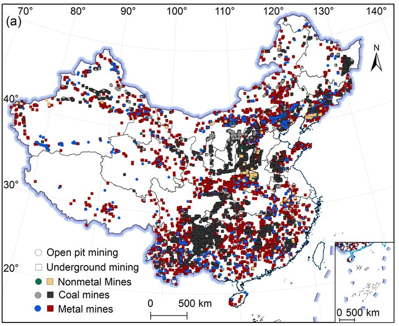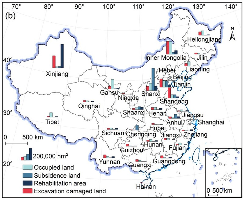 图1 中国矿山空间分布(a)和采矿损毁与治理概况(b)