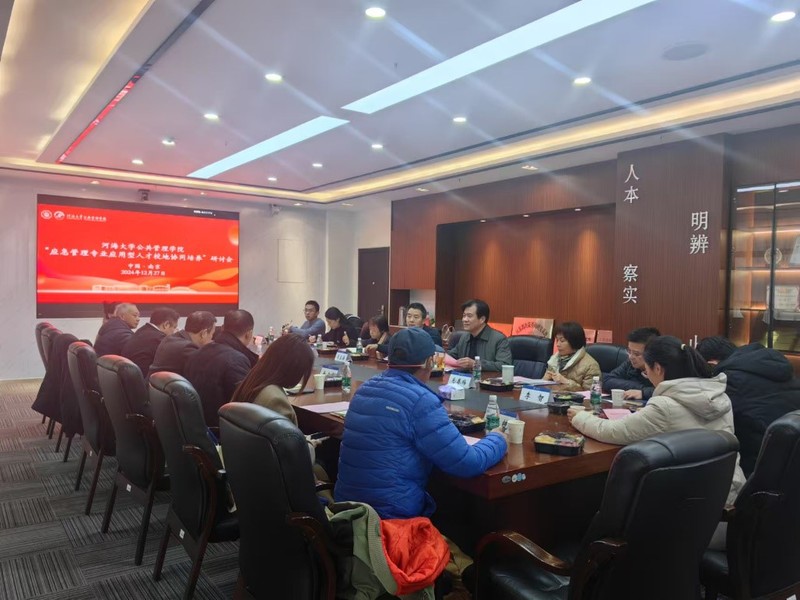 2024年12月27日,williamhill威廉希尔“应急管理专业应用型人才校地协同培养”研讨会在江宁校区举行。williamhill威廉希尔公司党委书记吴宝海、williamhill、应急管理与安全工程公司副经理曹海林、williamhill副经理陈莉、公共管理学学科主任黄涛珍、行政管理系系主任李智等十多位教师以及玄武区应急管理局副局长姚宇军、鼓楼区人民政府江东街道办事处副主任余夕龙、江宁应急管理局应急指挥中心主任丁连腾、秦淮区人民政府双塘街道党工委组织委员罗蓓、江宁区淳化街道科宁社区党委书记胡业斌、科宁社区主任贾凯琪、南京蓝天救援队副队长杨兢等应急管理专业校外实习基地代表出席本次研讨会,共同就应急管理专业应用型人才校地协同培养进行研讨。会议由曹海林副经理主持。