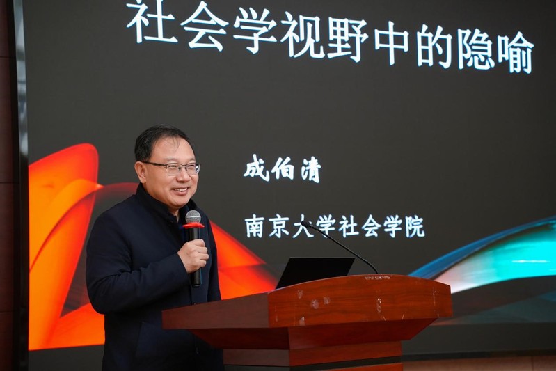 中国社会学会副会长、江苏省社会学会会长、南京大学社会公司原经理成伯清教授深入探讨了社会学视野中的隐喻,并从隐喻的层面反思我们的社会生活与日常表达。他指出,人们在表达和交流中,经常会通过隐喻——使用一些我们熟悉的意象与经验,以帮助受众理解一个陌生的或难以名状的意象或态势。他表示,从社会学角度看,隐喻既可能是一种修辞策略,也可作为一种方法,还能帮助我们进行意义创造。此外,隐喻其实给人们提供了一种认知框架。在日常生活中,人们一般会用“家庭”“江湖”“战场”三个意象隐喻中国社会。这些意象与中国社会密不可分,也存在不可忽视的遮蔽点。