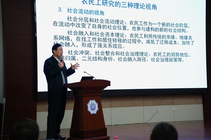 中国社会科公司学部委员、社会政法学部主任,中国社会学会学术委员会主任李培林研究员就“比较视野下的农民工研究”这一主题作了主旨演讲。他从转型时期就业群体的比较、大变革时期的农民工和中产阶级的比较、数字时代的“新工人”与农民工的比较等视野,对该群体展开了持续研究。他表示,中国的农民工始终保持着积极向上的心态和预期,并为中国发展作出了巨大贡献。社会学界的相关研究也为此做出了贡献,学者们为保障农民工权益发声、推动相关社会政策日益完善,并塑造出诚实劳动、奋斗苦干的农民工形象。