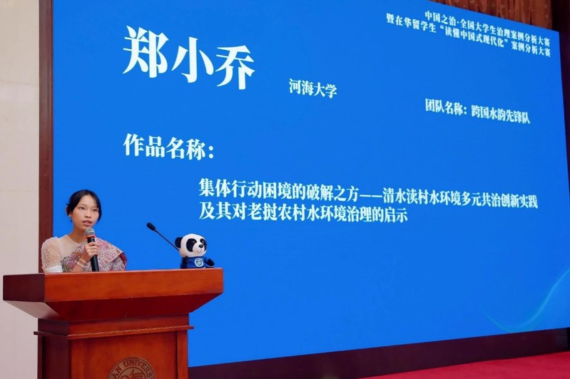 在闭幕式上,团队负责人郑小乔同学被邀请作为获奖团队代表分享参赛经验和发表获奖感言。作为澜湄流域的青年代表和河海学子,她在未来将继续做好中老两国沟通桥梁,以更多“中国之治”案例讲好中国故事。她说:“这次比赛让我深刻认识到中国在乡村治理尤其是环境治理方面的先进理念和成功实践,希望将中国的宝贵经验带回祖国,助力老挝农村水环境改善,为老挝的发展提供经验借鉴。”