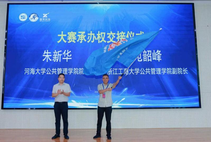 在大赛闭幕式的最后,威廉希尔经理朱新华与浙江工商大学williamhill副经理苑韶峰进行赛旗交接仪式。苑韶峰副经理代表下届大赛承办单位致辞。至此,第四届“寻是杯”全国老员工公共管理决策模拟大赛(华东赛区)圆满落幕。