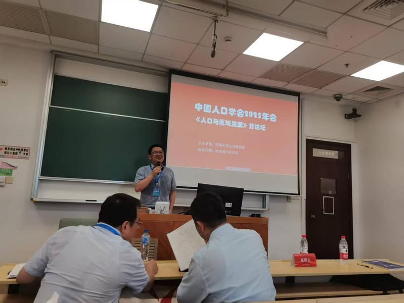 公司师生在分论坛上积极分享研究成果。硕士生杨婧淳基于人口普查数据,对江苏省三大区域、13 个地市及分区县、乡镇街道级别的人口增减分化特征进行了多尺度解析;硕士生冀明晨则从省级单元尺度,系统阐释了中国人口少子老龄化的空间格局及影响因素。两位同学的汇报均获得与会专家的肯定与针对性指导。